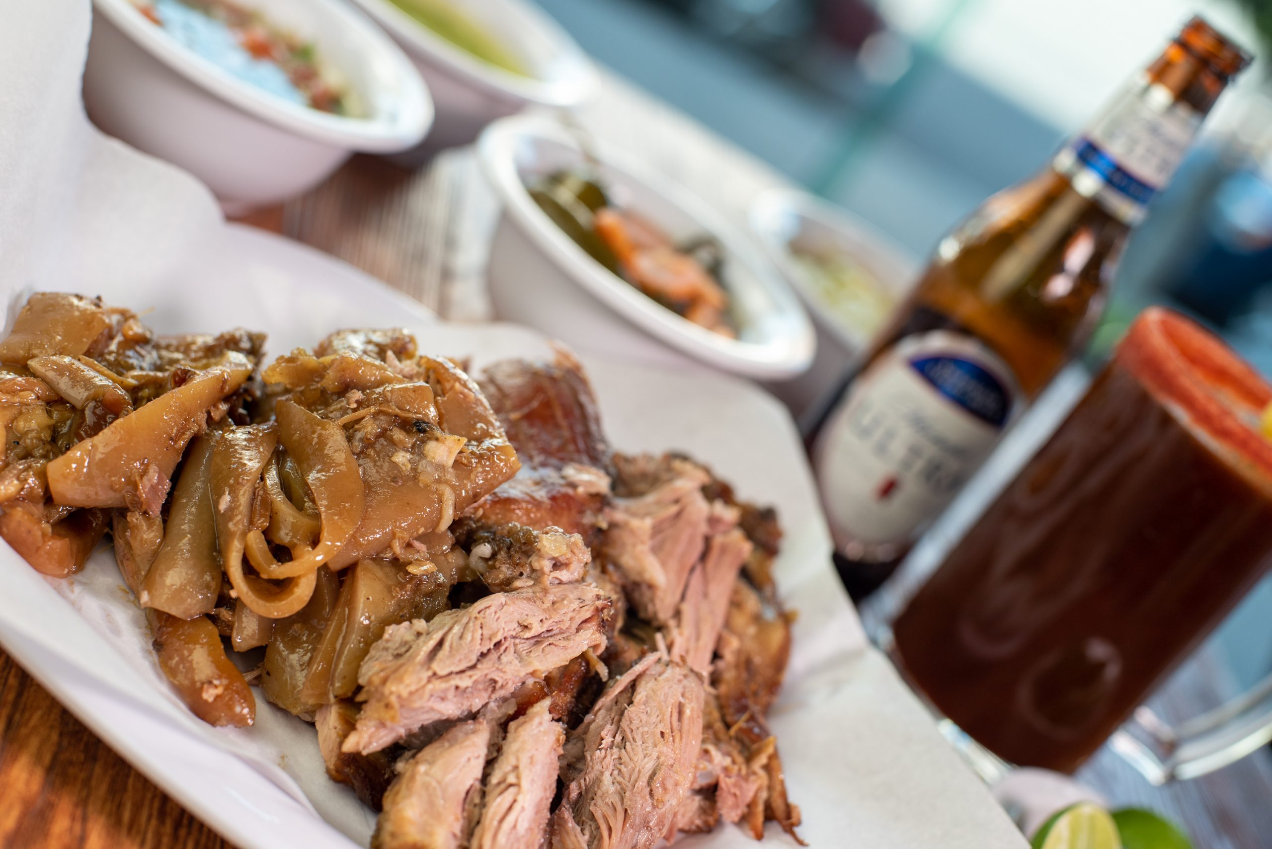 Incluye salsa verde, ensalada de col y limones.