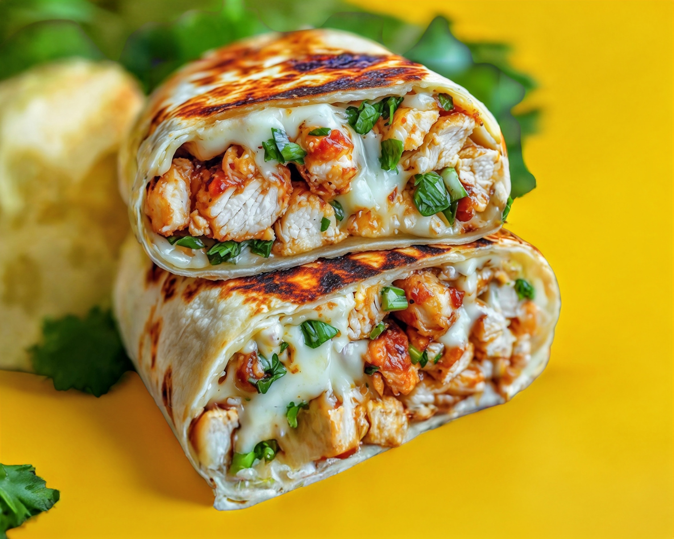 Tortilla de harina con pechuga de pollo o carne enchilada o longaniza o campechana (carne sujeta a disponibilidad de inventario) y queso gratinado.