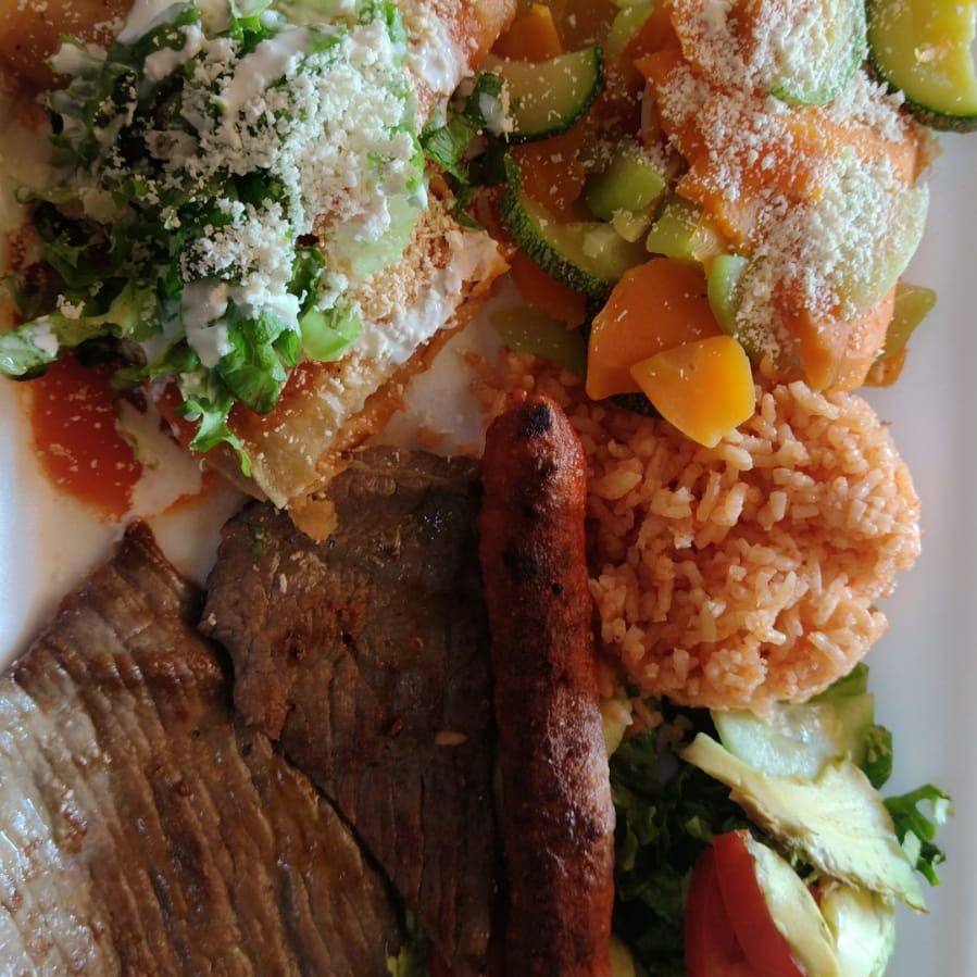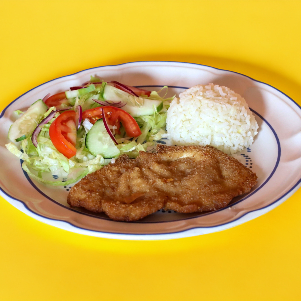 Incluye fruta, café y pan dulce. Arroz y ensalada.