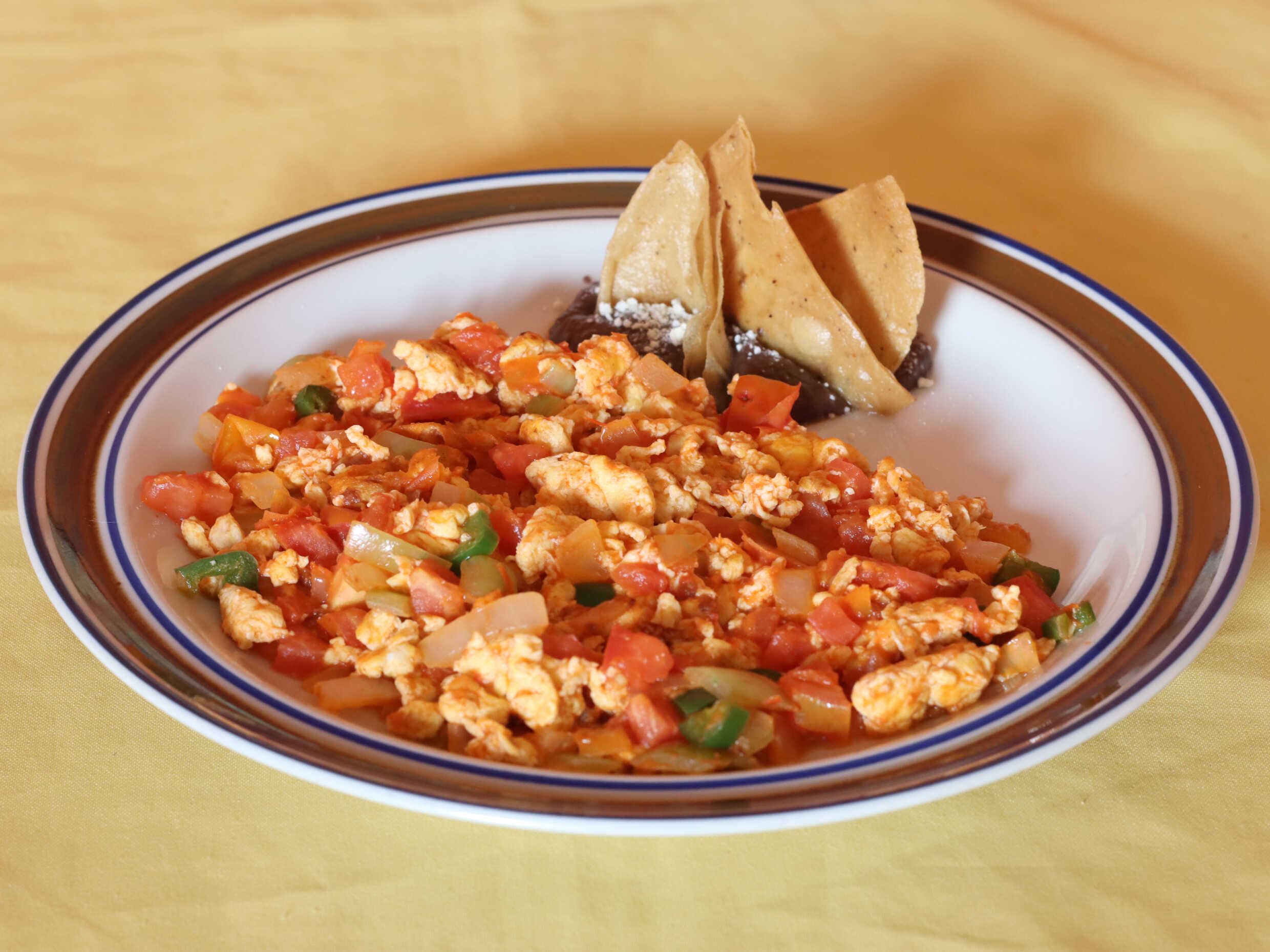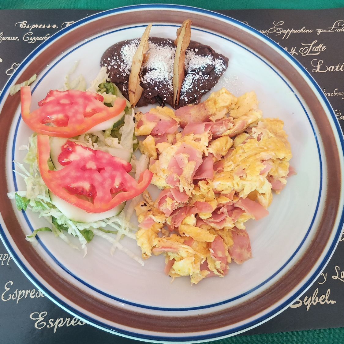 Incluye fruta, café y pan dulce, tortilla, frijol, jamón, plátano frito, gratinados y bañados en salsa.