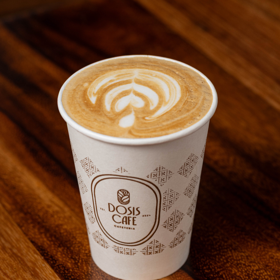 Café espresso con leche caliente y espuma cremosa. Su sabor es suave y aromático, con una textura envolvente que lo hace perfecto para cualquier momento del día.