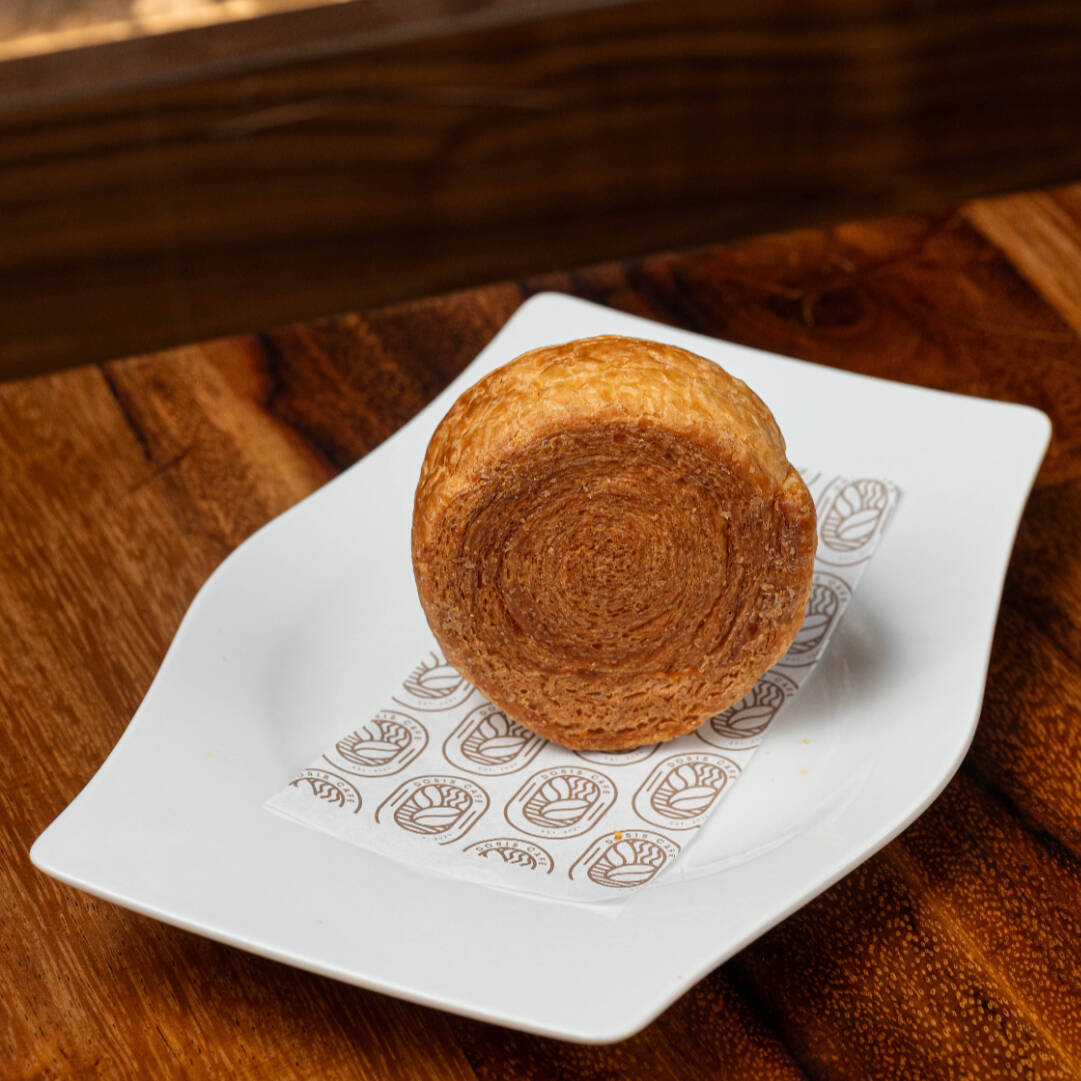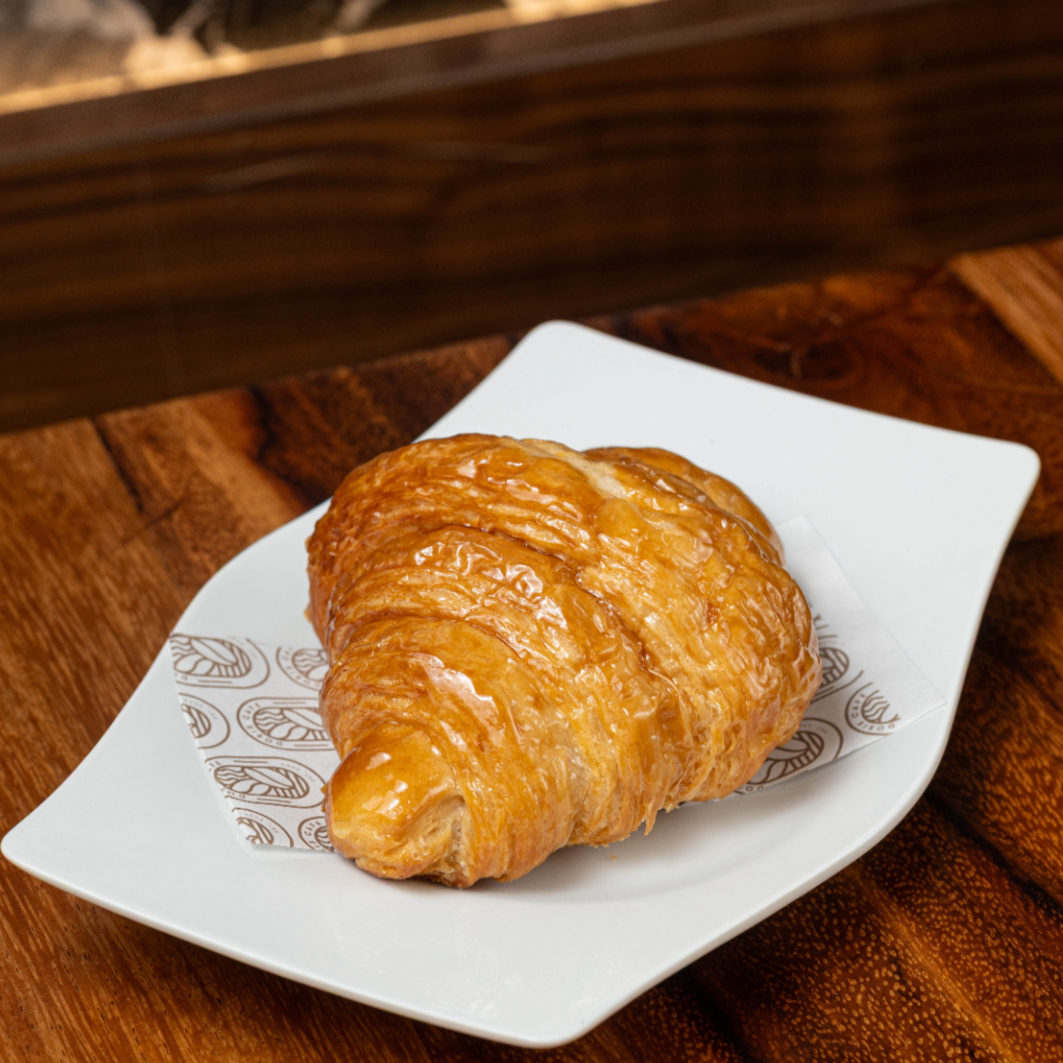 Clásico de la panadería francesa, elaborado con masa hojaldrada y mantequilla de alta calidad. Su forma de media luna y su dorado crujiente esconden un interior suave y delicado, con capas finas que se deshacen en cada bocado se puede rellenar de crema de vainilla o chocolate.