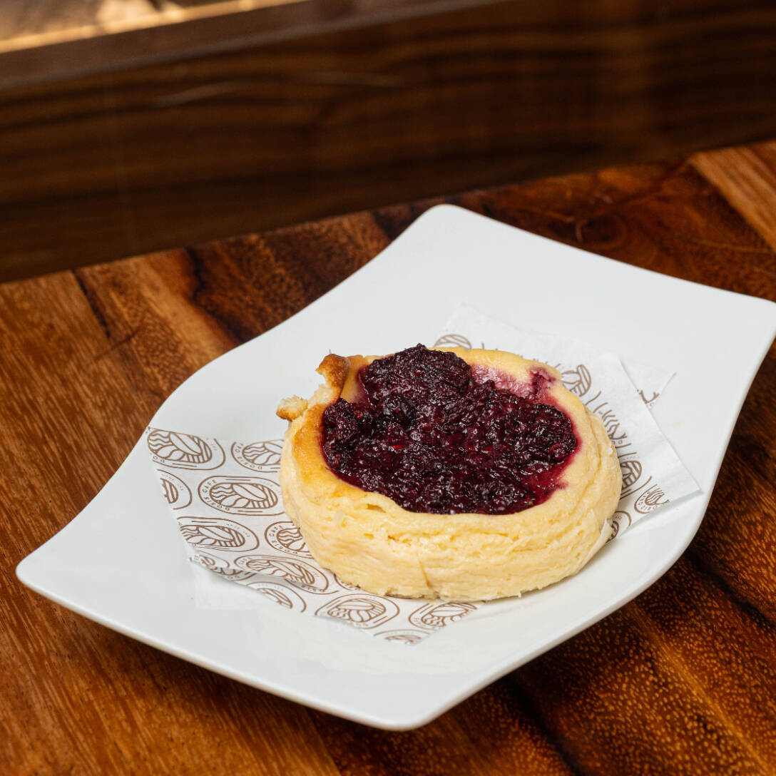 Elaborado con queso crema, huevos, azúcar y nata, horneado a alta temperatura para lograr una superficie dorada y ligeramente caramelizada. Su interior es suave, cremoso y delicadamente dulce, con notas de mantequilla tostada. Servida a temperatura ambiente o ligeramente fría.