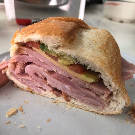 Jamón envinado,mayonesa,lechuga jitomate y aguacate, el picante es al gusto.