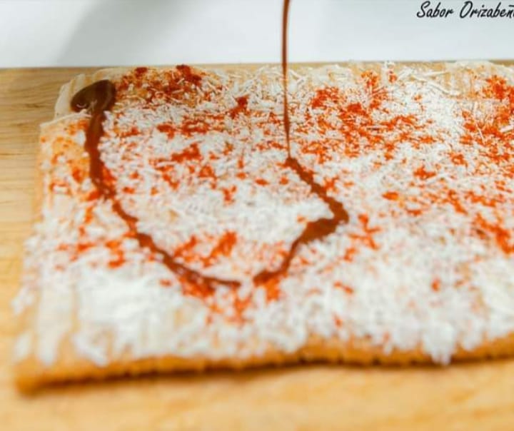 Crema, queso y chile en polvo.