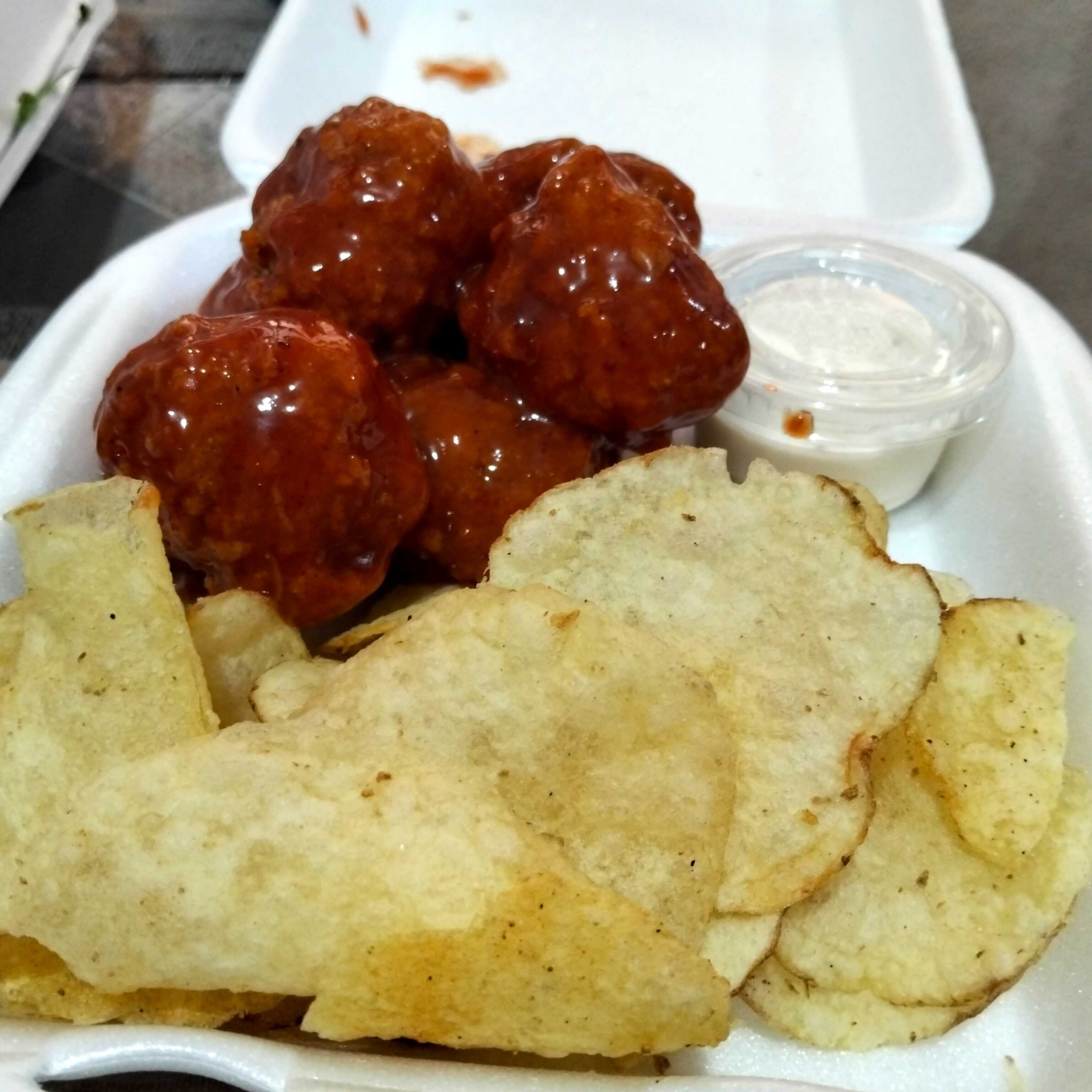 250gr de boneles bañados con la salsa de tu elección acompañadas con ranch y papas fritas.