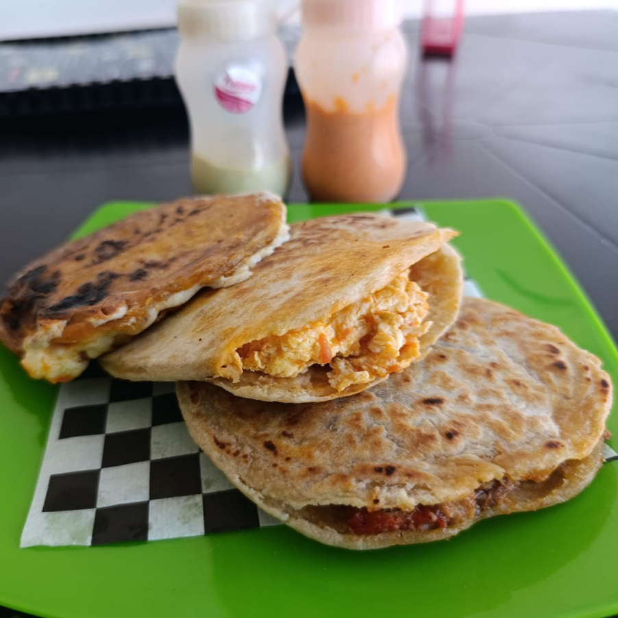 Pieza individual, rellenos chicharrón prensado, frijol con queso, salsa de chicharrón, picadillo, choriqueso o salsa de huevo.