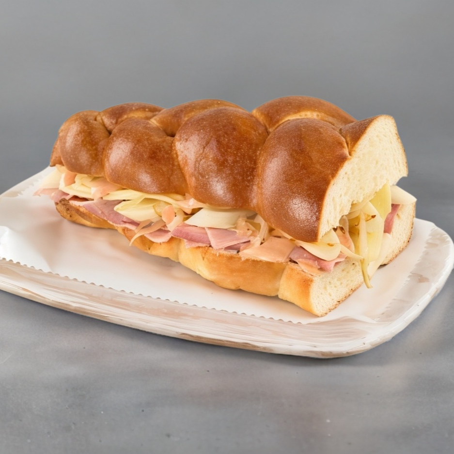 Pan danés; mayonesa aguacate; carne de hamburguesa; jitomate; queso chiwis; catsup; mostaza; cebolla sazonada (piña o champiñón) jamón de pierna; queso de hebra ;queso manchego y de picante (habanero en salsa; rajas en vinagre o macha )