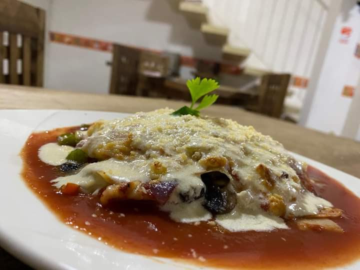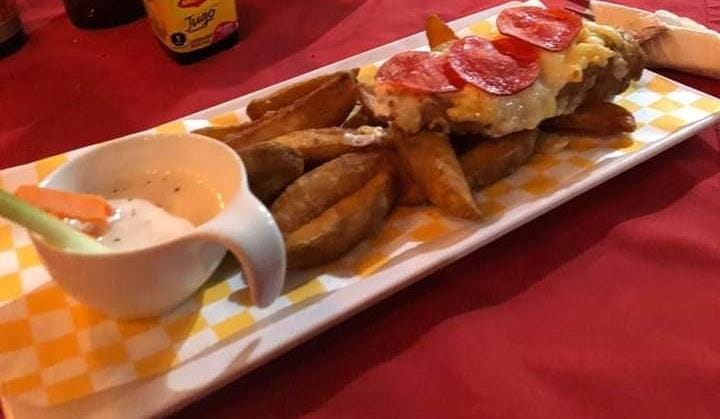 Pechuga empanizada con salsa a elegir, BBQ, habanero, mango habanero ó búfalo, gratinada con nuestra mezcla de quesos y papas.
