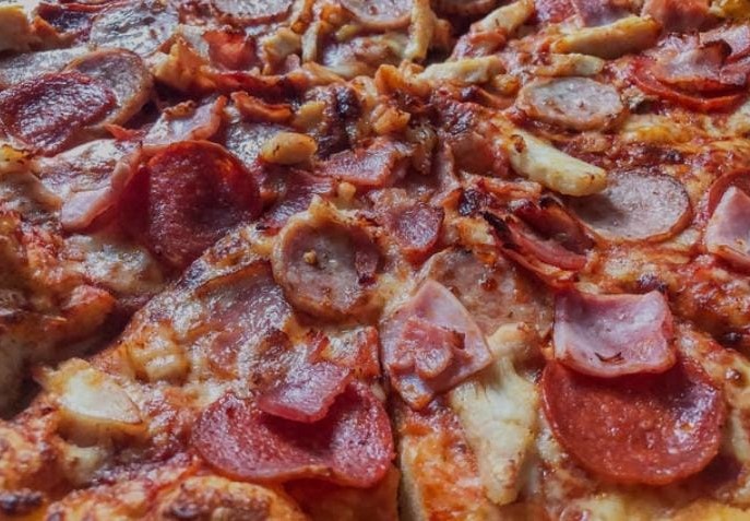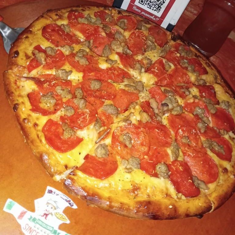 Con pepperoni, salami, jamón, salchicha ó chorizo y gratinada con nuestra combinación de quesos.