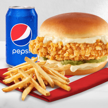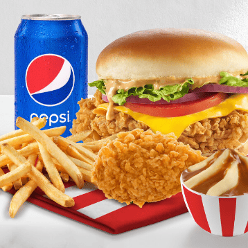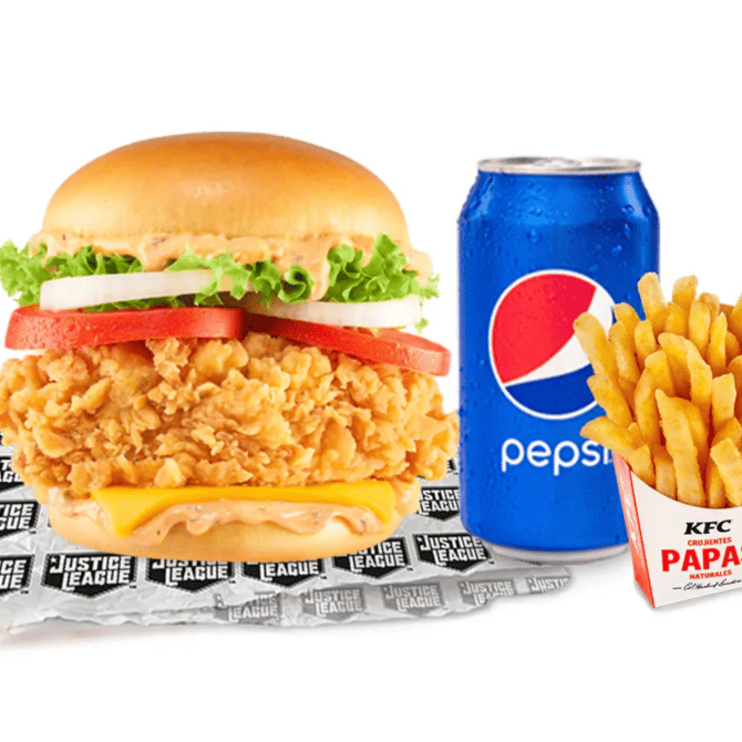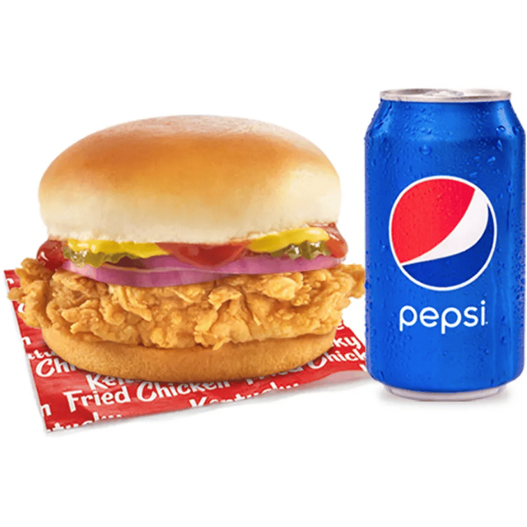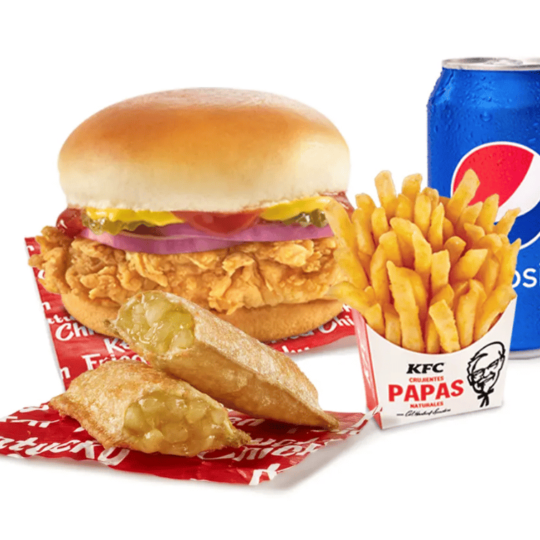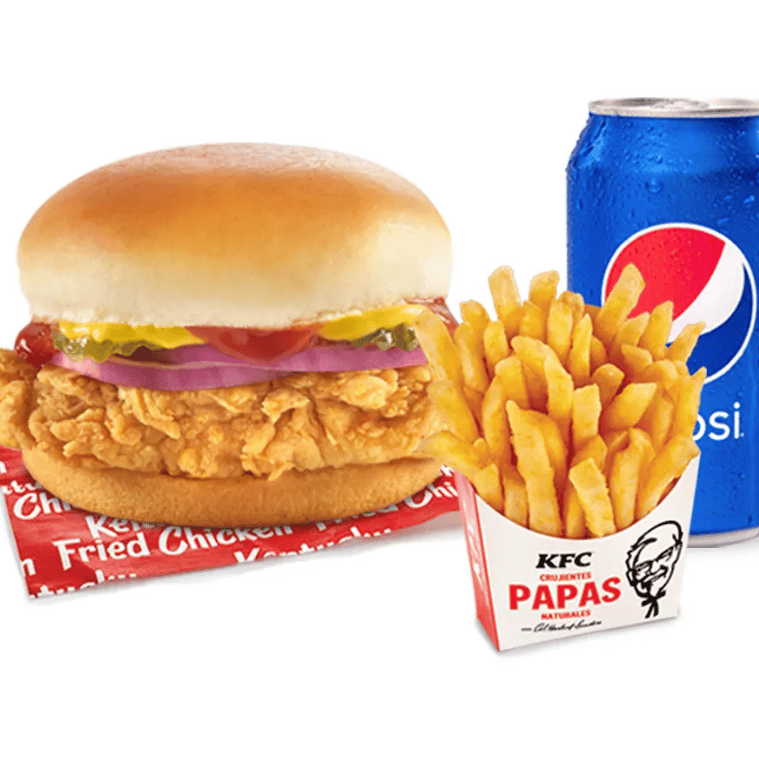 1 Kentucky Chicken Sandwich Secreta Original + 1 Ke-Tira en cualquier receta o salseado+ 1 Complemento Individual + Papas Medianas + 1 refresco lata