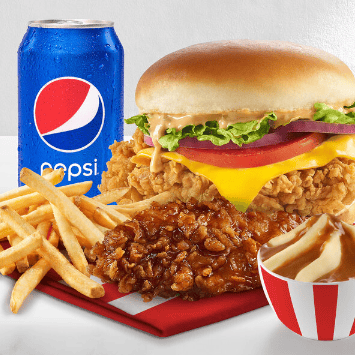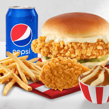 1 Kentucky Chicken Sandwich Original + 1 pieza de pollo en cualquier receta + Papas Medianas + 1 Complemento Individual + 1 refresco lata