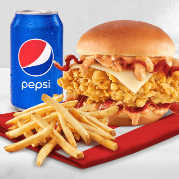 1 Chipotle Bacon Chicken Sandwich + 1 Ke-Tira en cualquier receta o salseado+ 1 Complemento Individual + Papas Medianas + 1 refresco lata