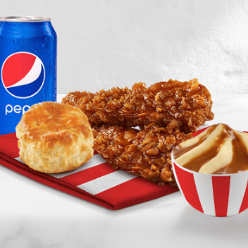 3 Ke-tiras en cualquier receta o salseado + 1 complemento individual + 1 bisquet original + 1 refresco lata