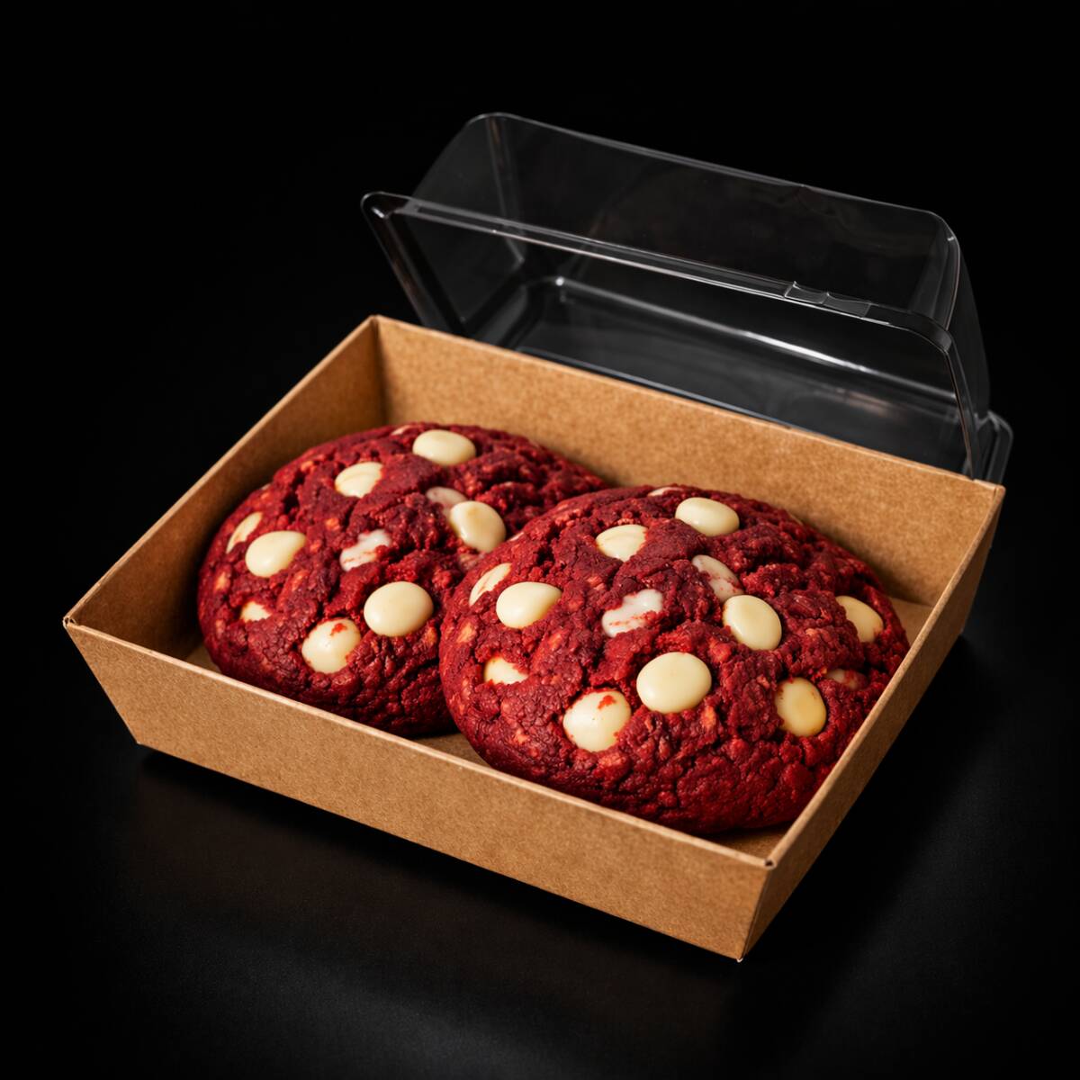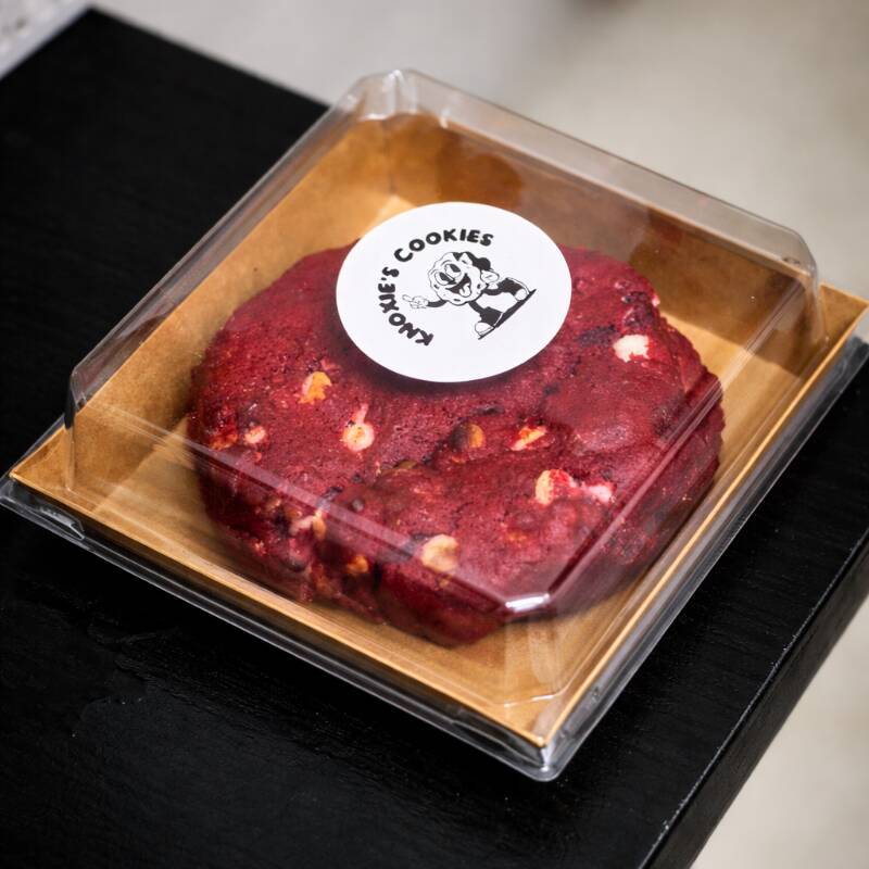 Galleta gigante 200gr, gruesa y suave por dentro, con intenso sabor red velvet y chispas de chocolate blanco derretidas. Recién horneada, perfecta para un antojo premium.
