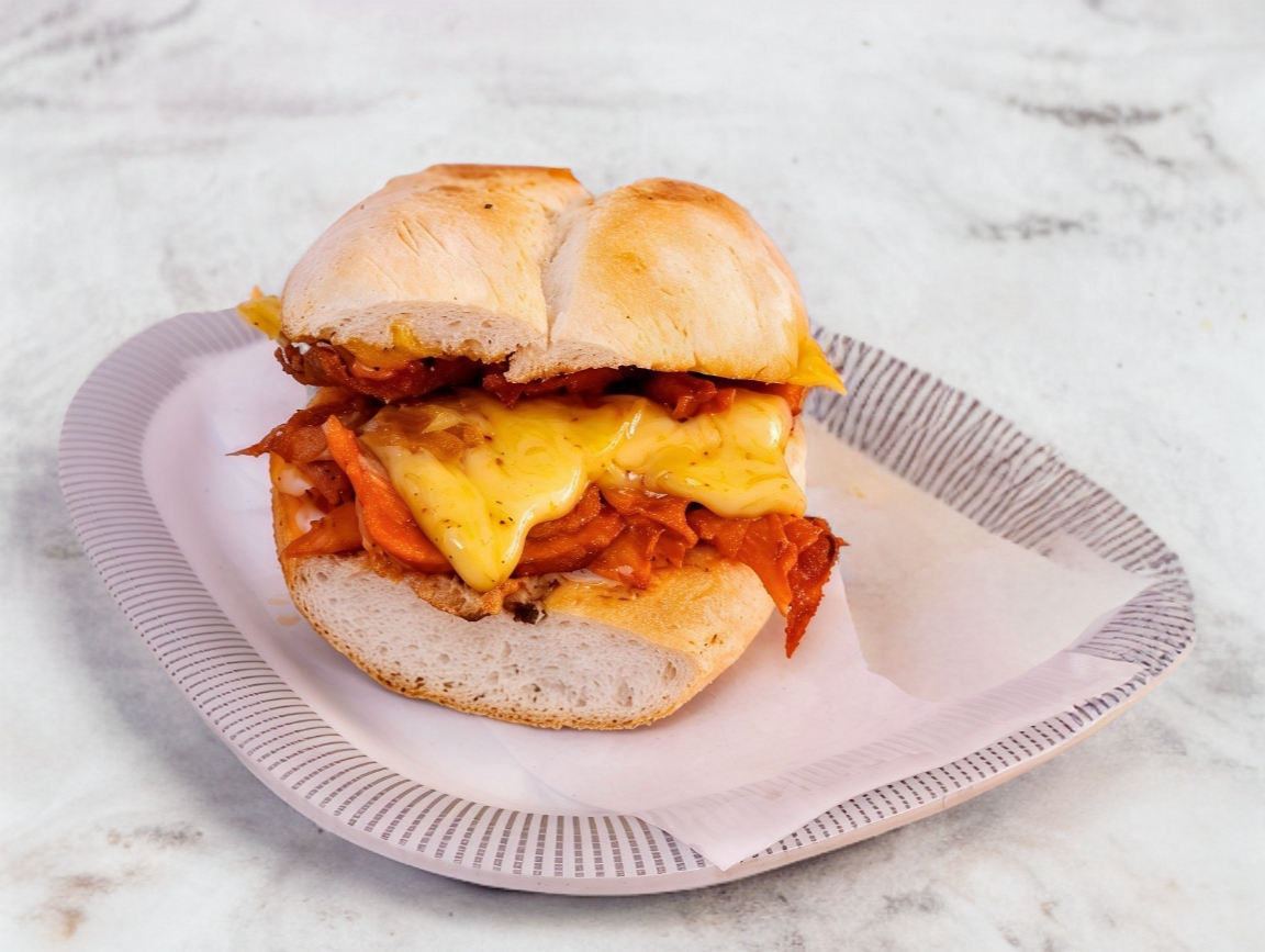 Pambazo de pastor con queso, frijoles y mayonesa.