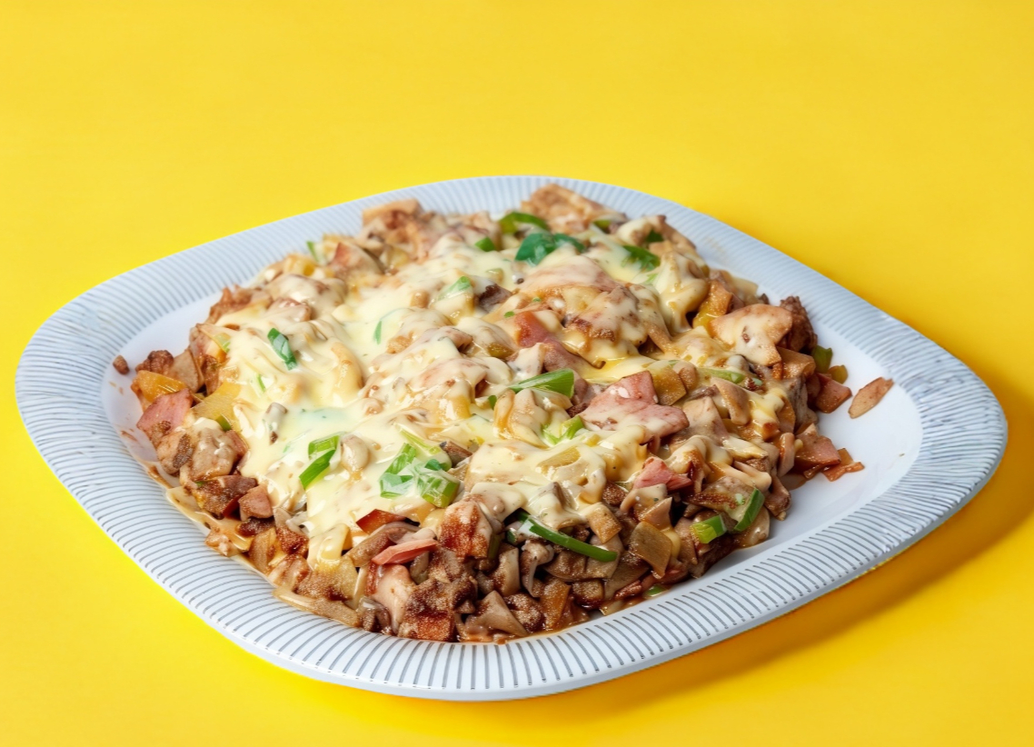 Bistec, tocino y queso.