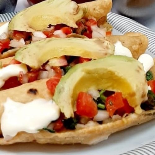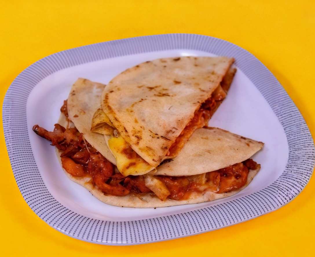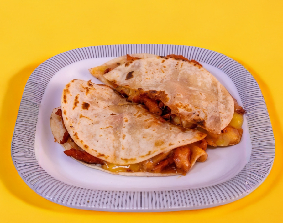 Sincronizada de pastor, piña y queso en tortilla de harina