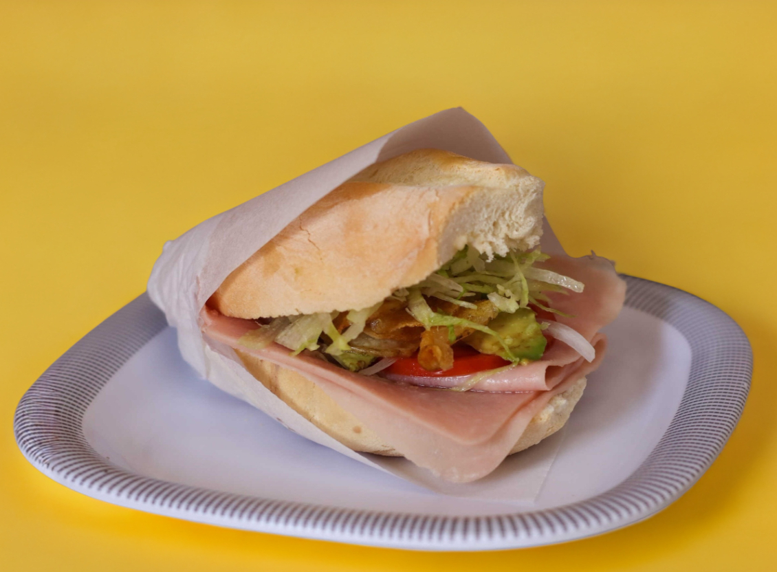 Ingrediente a elegir. Pollo, pierna, jamón, queso amarillo, queso blanco, quesillo o queso de puerco. Acompañado de jitomate, cebolla, aguacate, vinagreta de la casa y mayonesa.