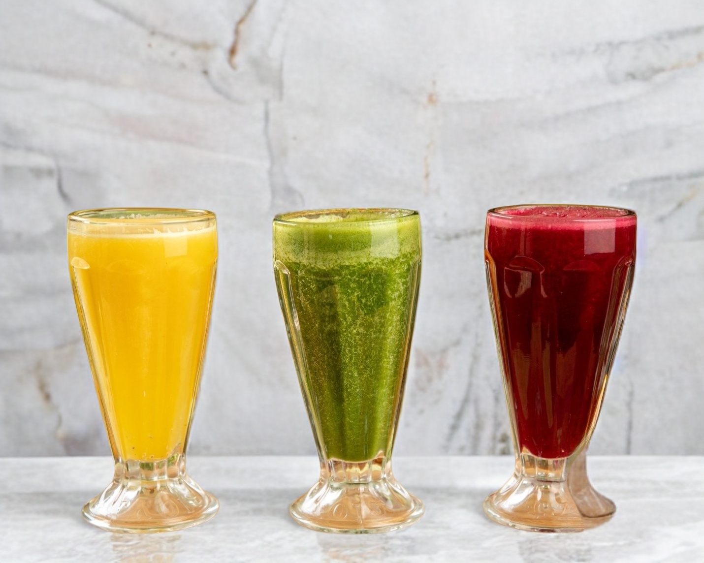 jugos naturales con sabores auténticos de toronja, betabel y zanahoria.