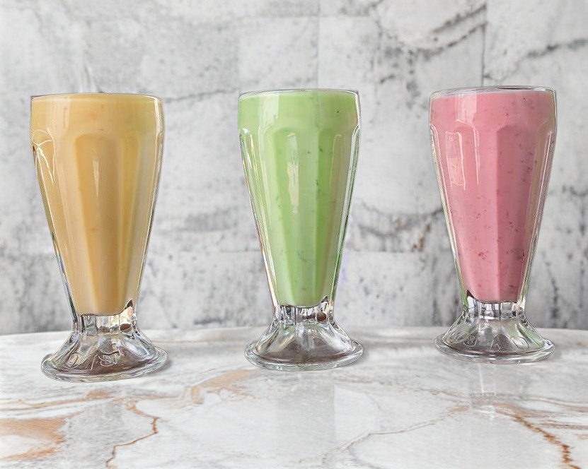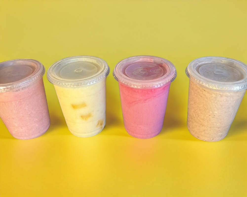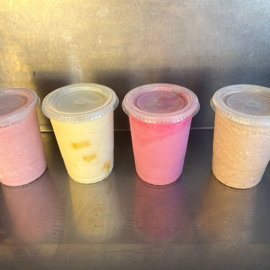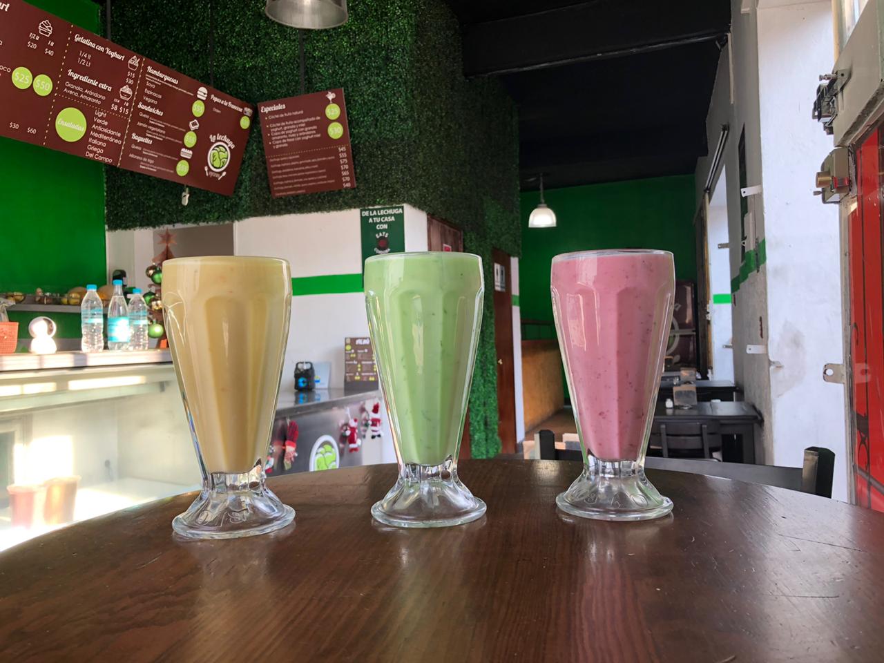 Variedad irresistible de licuados que incluyen sabores como fresa, plátano, mango, guayaba, papaya, granola, Chocomilk, manzana y avena.