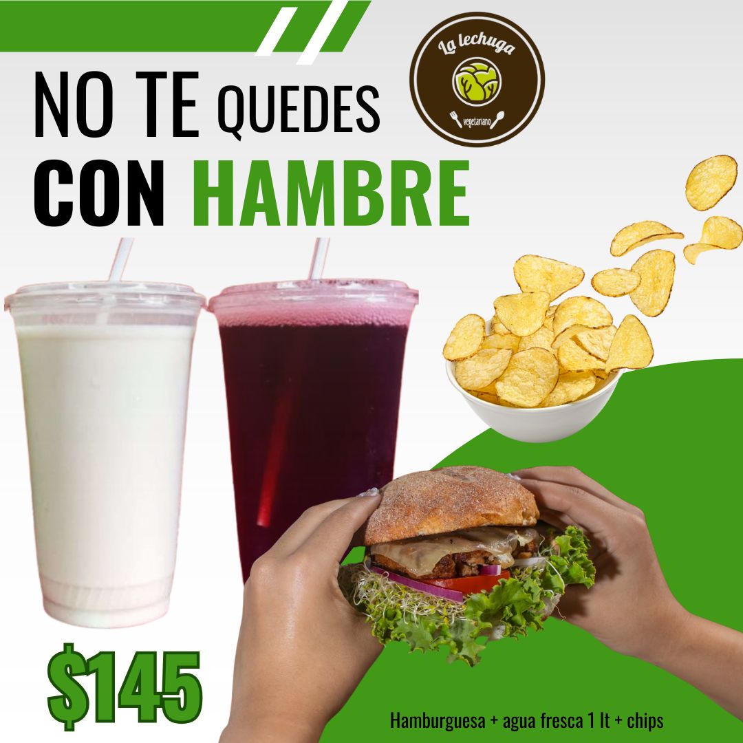 Hamburguesa Vegana*1 + Agua Fresca*1 + Papitas Chips*1