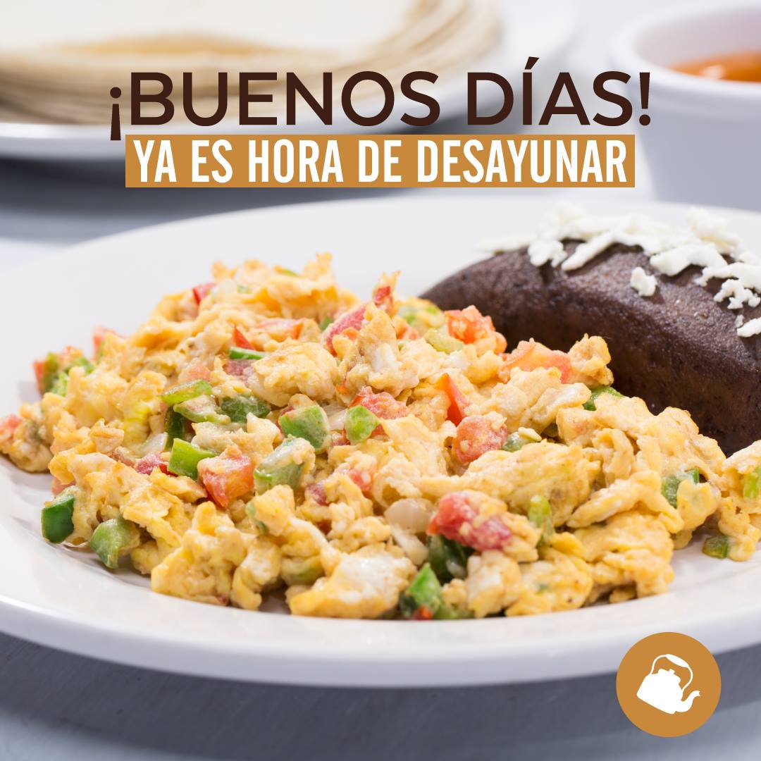 Con huevos revueltos o fritos 2 huevos o pollo 90g, acompañados de frijoles refritos.