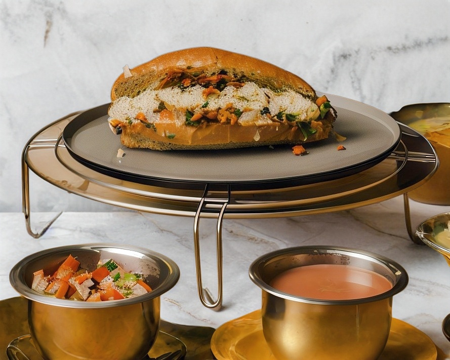 Deliciosa preparación con pan torta, mayonesa, carne, cebolla, cilantro y queso.