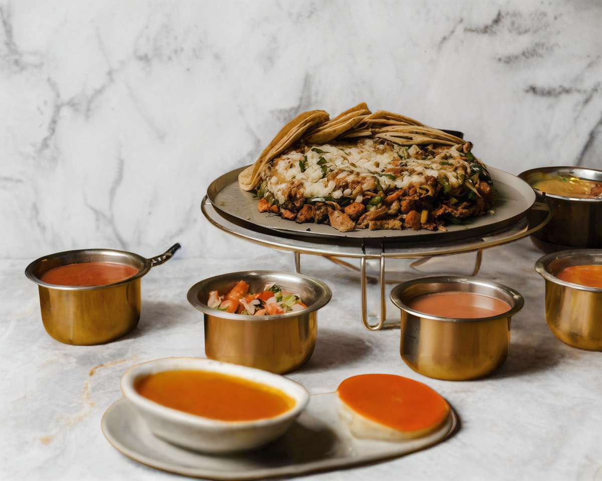 Delicioso platillo familiar de 750 gr. contiene 30 tortillas, salsas, limones y pico de gallo. Contiene poblano, cebolla, jamón, queso, chuleta, costilla, pastor, bistec, longaniza y árabe.