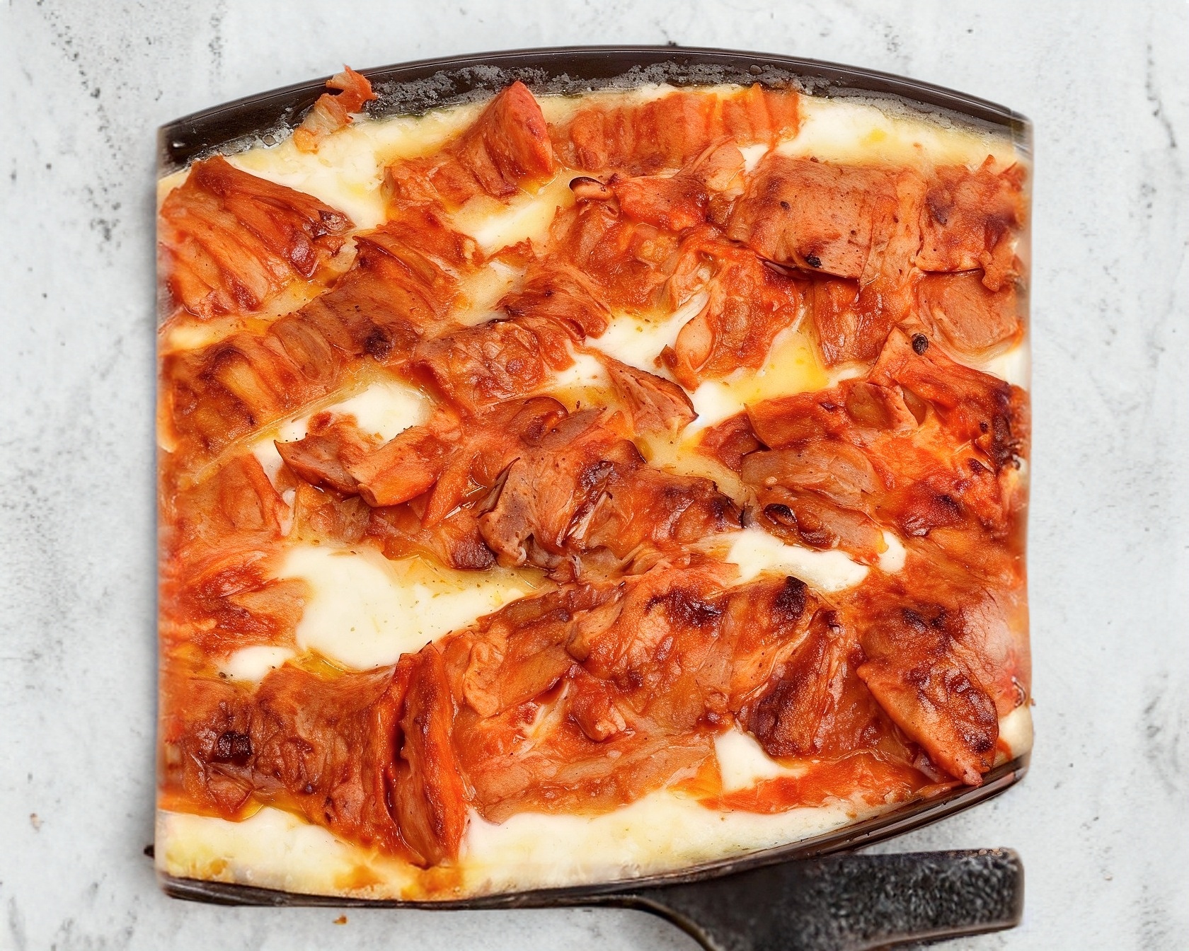 Delicioso platillo familiar de 750 gr. contiene 30 tortillas, salsas, limones y pico de gallo. Contiene poblano, cebolla, jamón, tocino, queso, costilla, pastor y pastor negro.