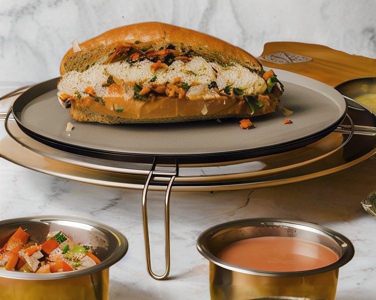 Deliciosa preparación con pan torta, mayonesa, carne, cebolla, cilantro, piña y queso.