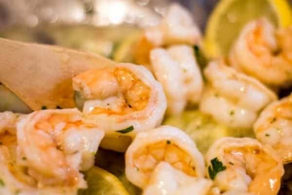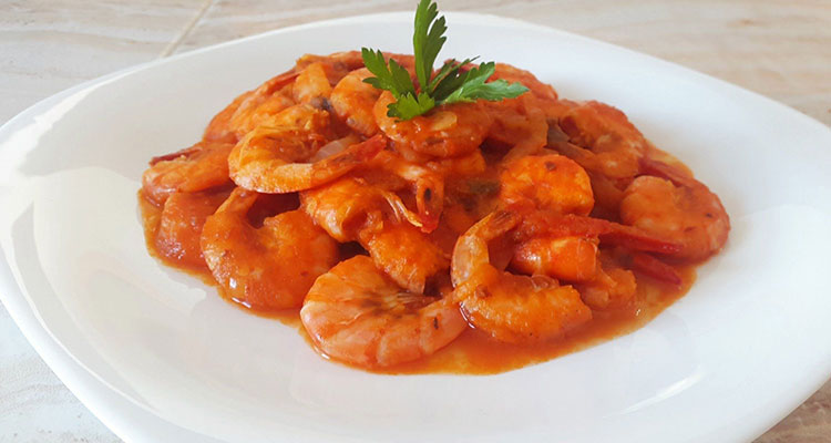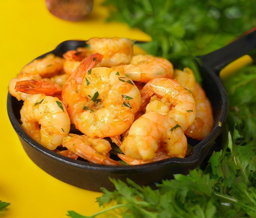 Camarones salteados con mantequilla, guajillo y salsa secreta.