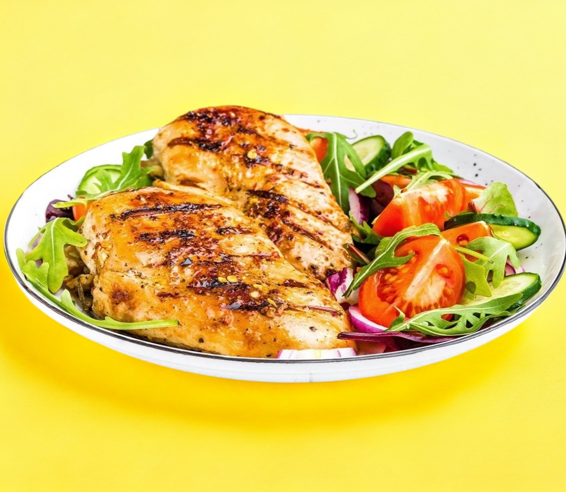Pechuga empanizada, bañada en salsa italiana, champiñón, pimiento, cebolla, jamón y gratinado en queso mozzarella.