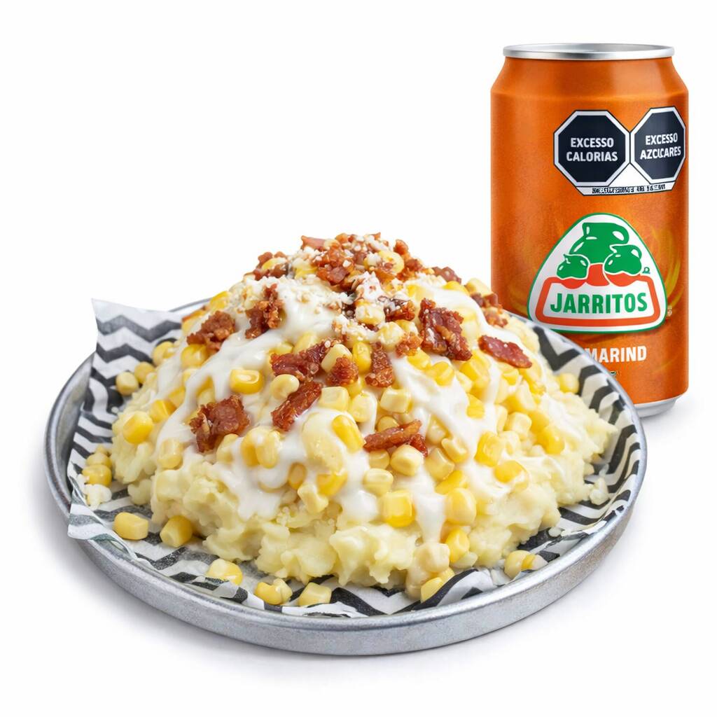 ⭐ El más pedido Esquite cubierto con queso derretido en exceso + papas crujientes + toppings 💥 Una bomba de sabor que sí llena 👉 Incluye refresco