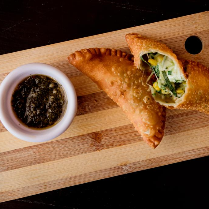 Carne de res, cebolla, aceitunas negras y pasitas.