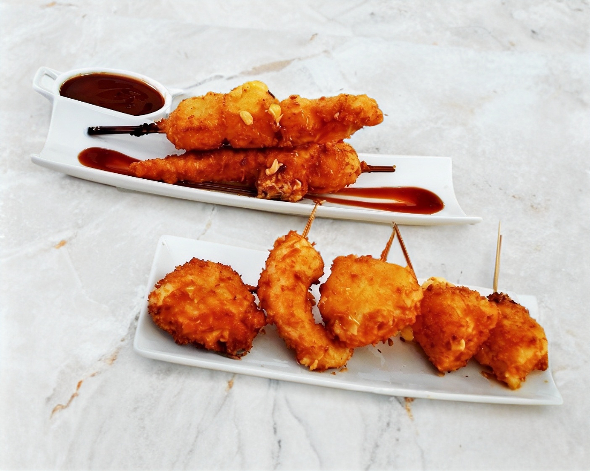 3 Piezas bañados en salsa agridulce.