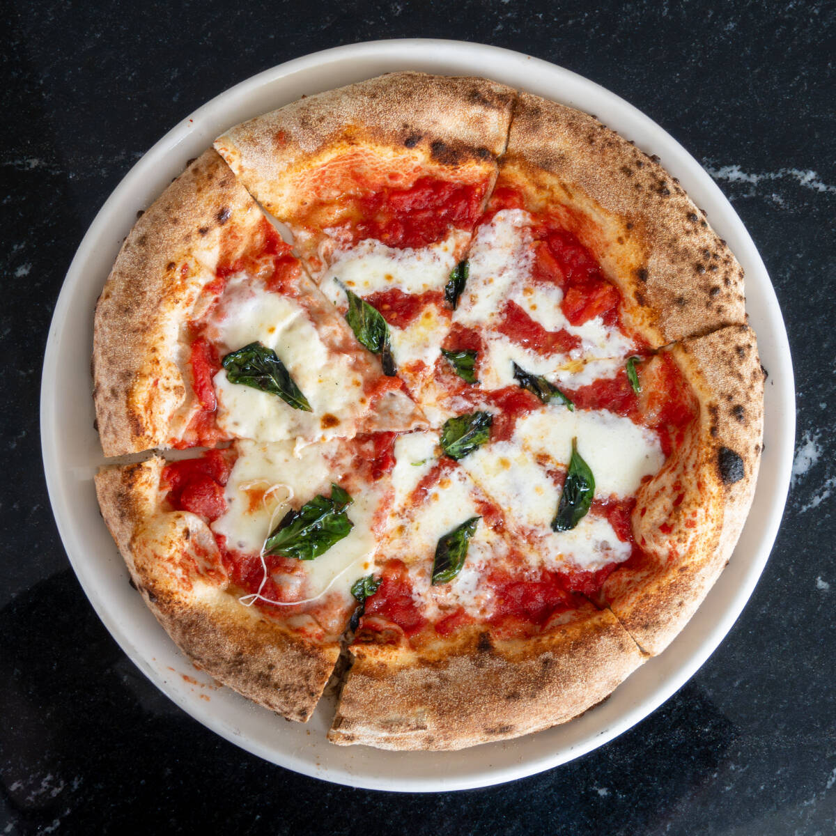 Base de pomodoro, queso mozzarella fior di latte, aceite de oliva extra virgen y albahaca fresca.