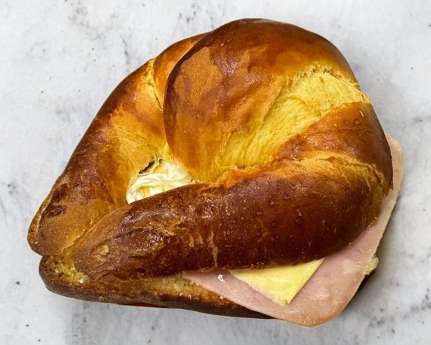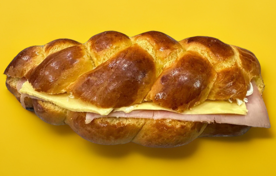 Pan brioche, jamón de pierna, queso oaxaca, queso amarillo, mayonesa.
