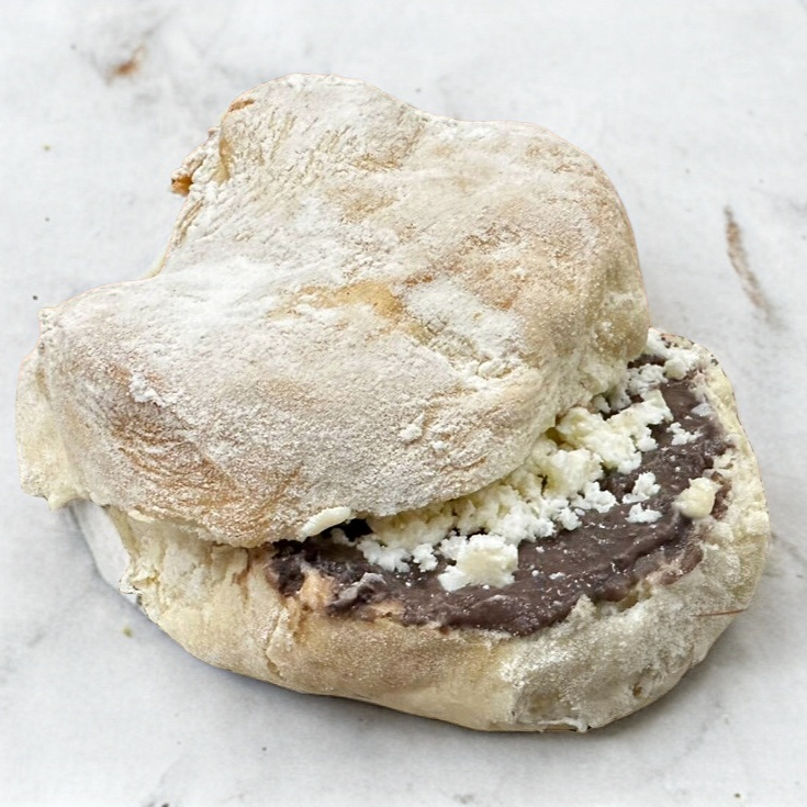 Pan tradicional Orizabeño, frijoles refritos, queso fresco, mayonesa.