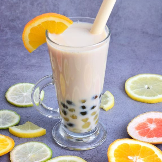 Bebida a base de leche sabor limón-hinojo con hielo y perlas de tapioca (16 Oz.)