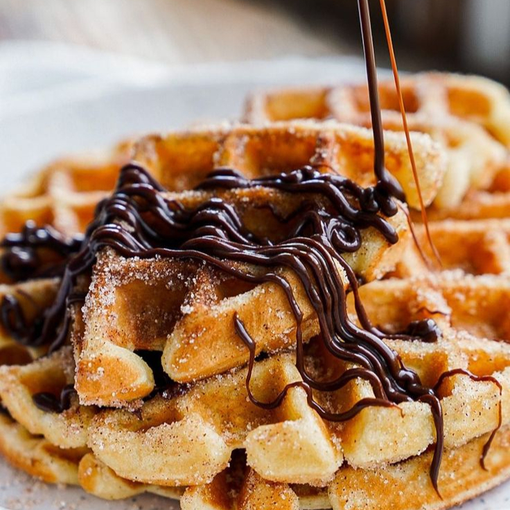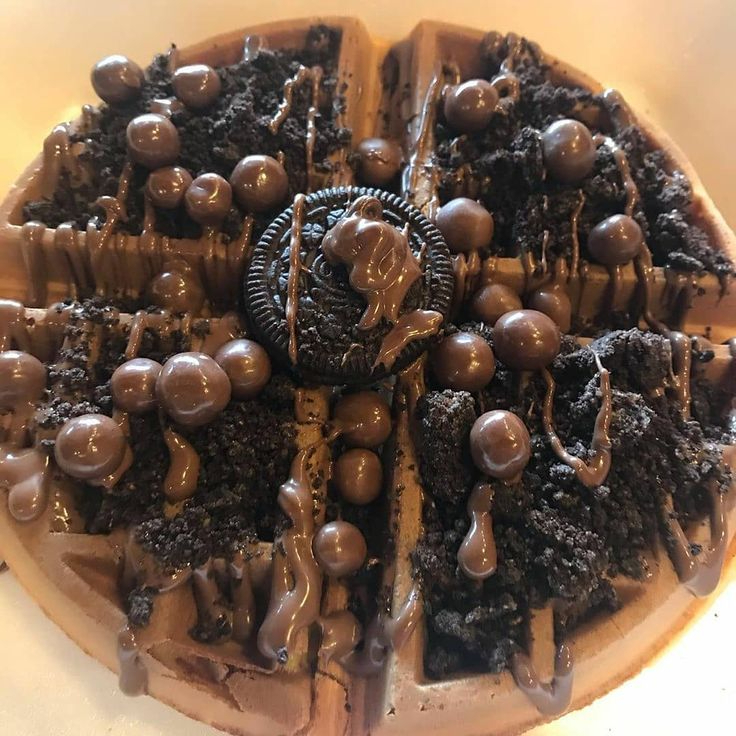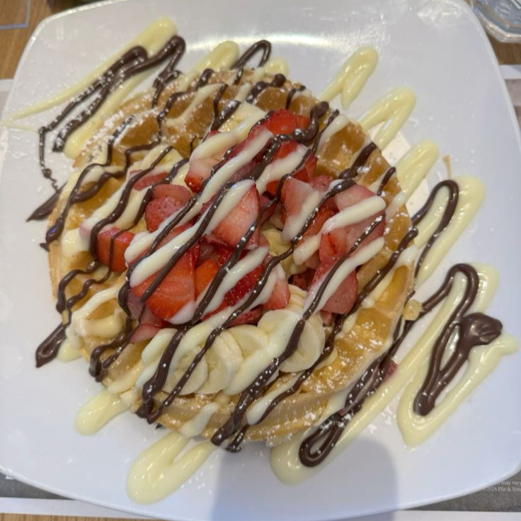 Delicioso waffle acompañado de Hershey´s, Nutella, Ferrero, Kinder Delice y galleta Oreo