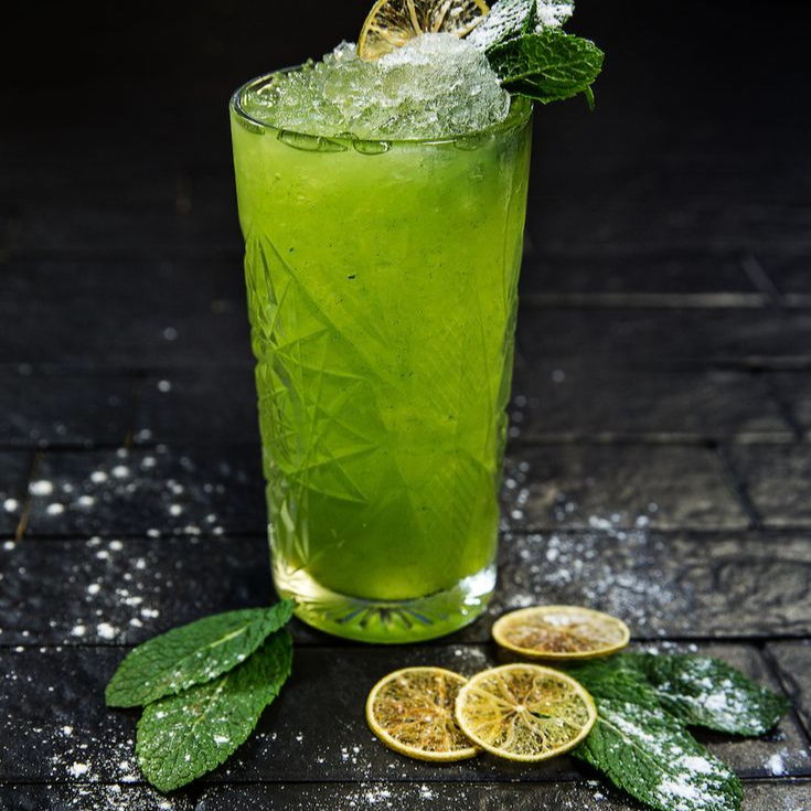 Bebida a base de leche sabor hierbabuena con hielo y perlas de tapioca (16 Oz.)
