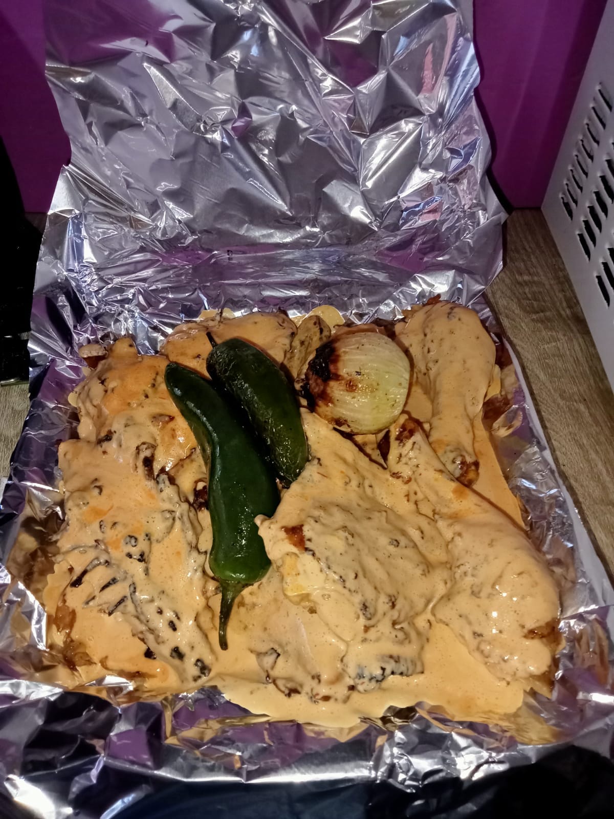 Delicioso pollo asado con crema de chipotle, para chuparse los dedos
