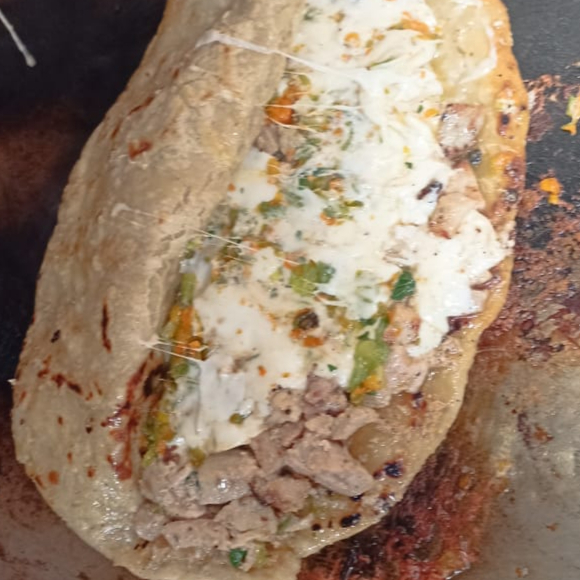Pambazo blanco y suave, espolvoreado con harina, dorado ligeramente y relleno con el guisado de tu preferencia 🤤✨. Un clásico diferente, esponjoso y lleno de sabor, perfecto para cualquier antojo 😍🔥