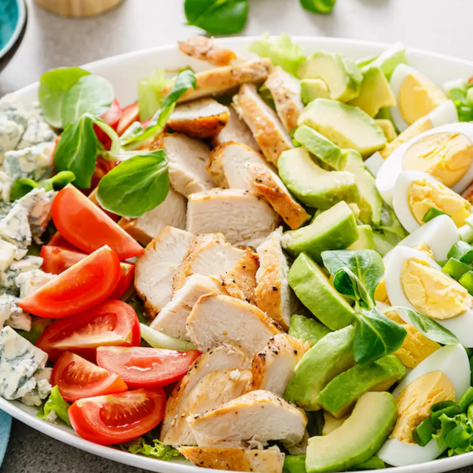Fresca mezcla de lechugas, pollo, huevo, queso, tocino y aderezo especial 🥬🍗🥓. Ligera, elegante y llena de sabor 💛✨