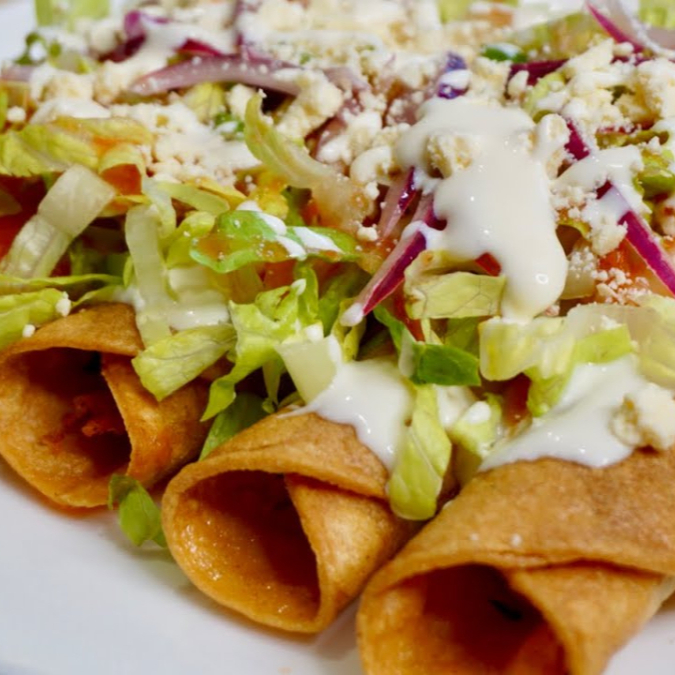 Tacos crujientes y dorados, rellenos de sabor, acompañados de lechuga fresca, crema, queso y salsa 🤍🧀🌶️. Un clásico que nunca pasa de moda 🤤✨