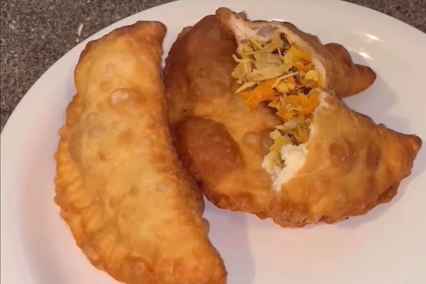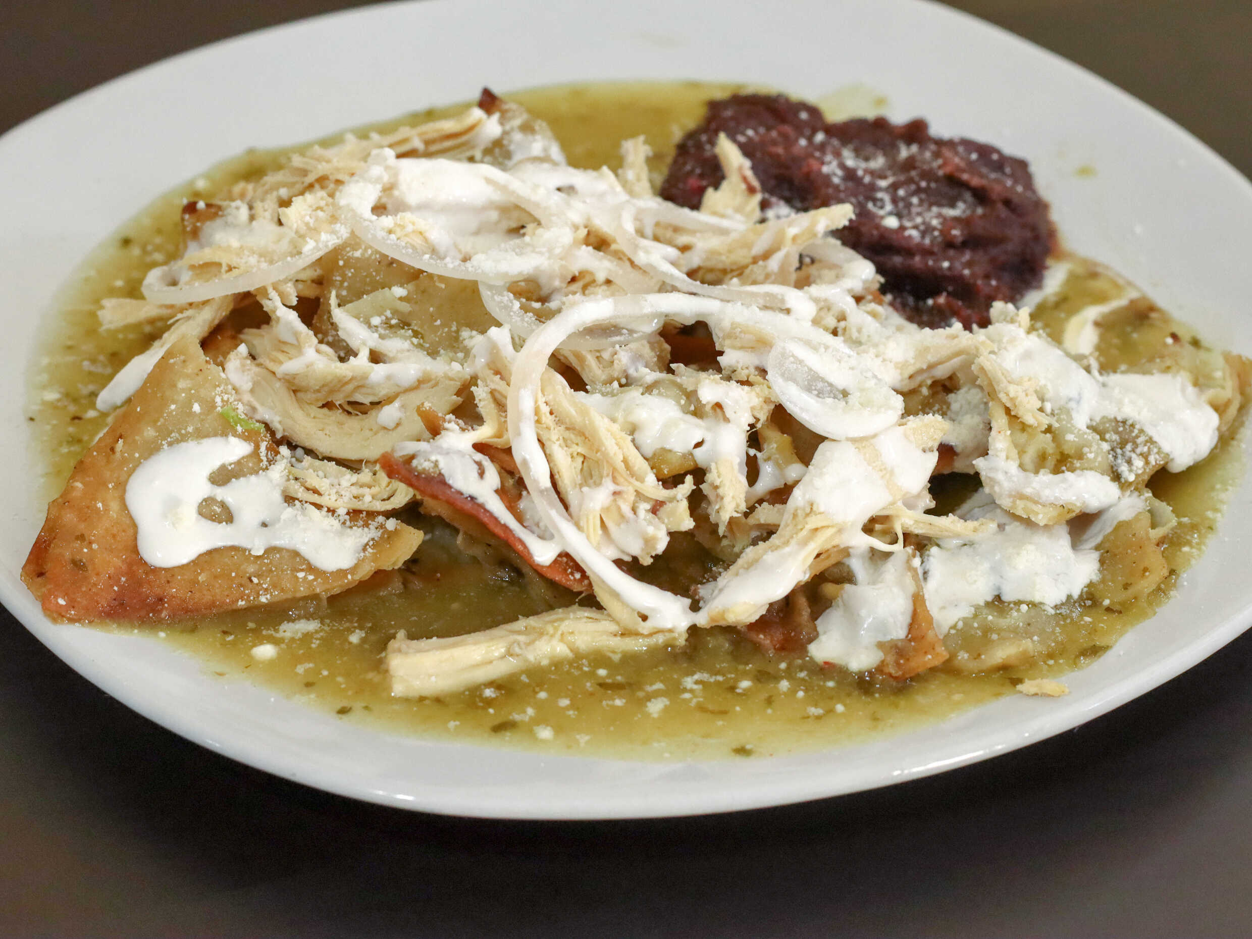 tortillas de maiz en salsa verde conrelleno de pollo queso y crema.