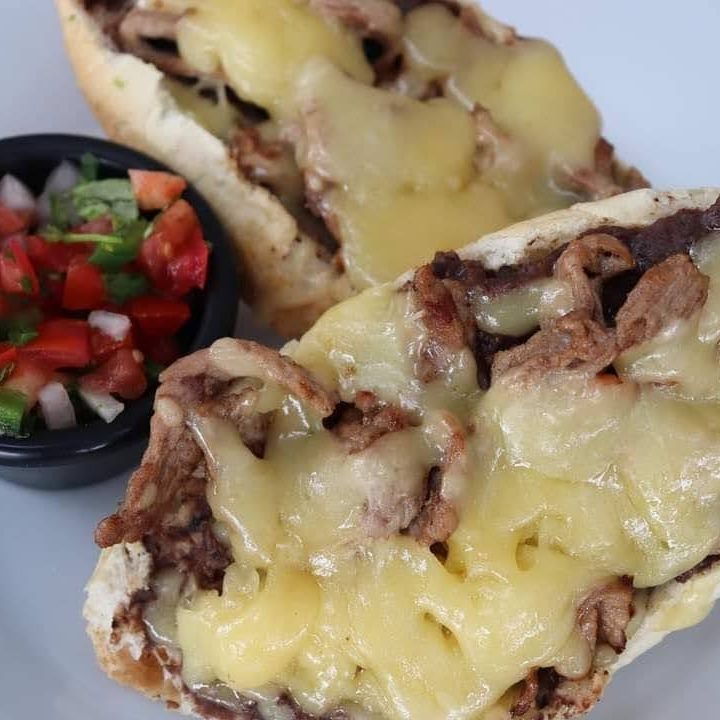Tortillas de harina rellenas de jamón, queso de hebra y queso manchego fundido.