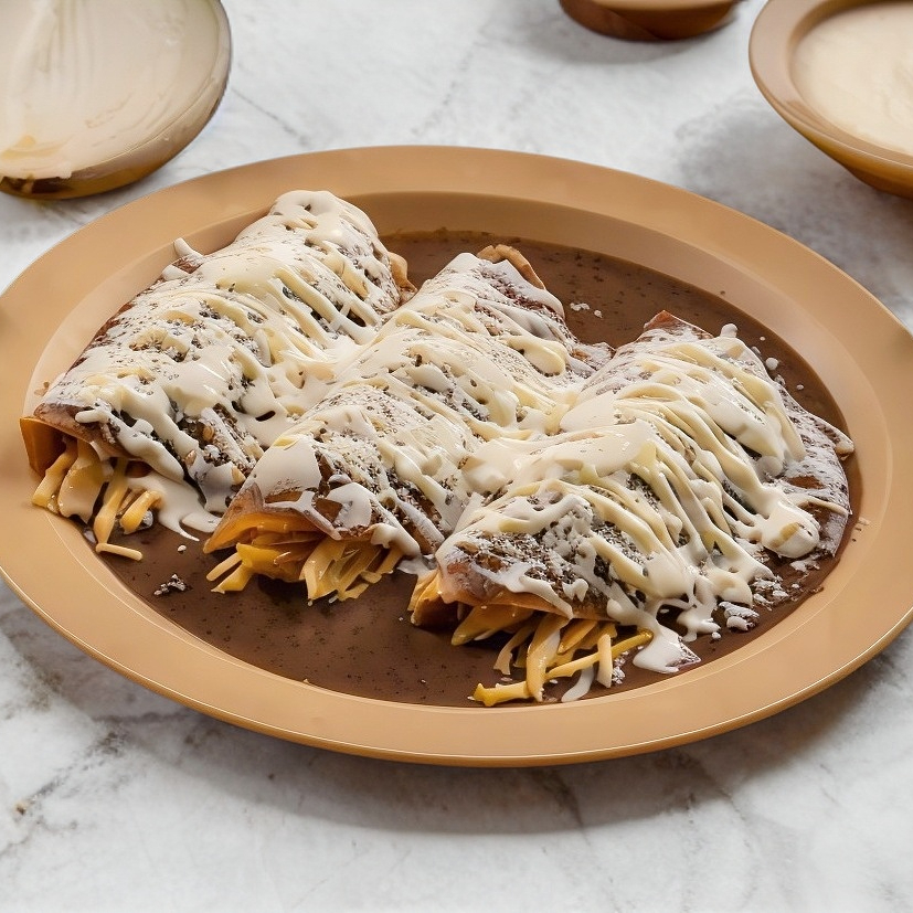 Rellenas de pollo, acompañadas de queso, crema y cebolla