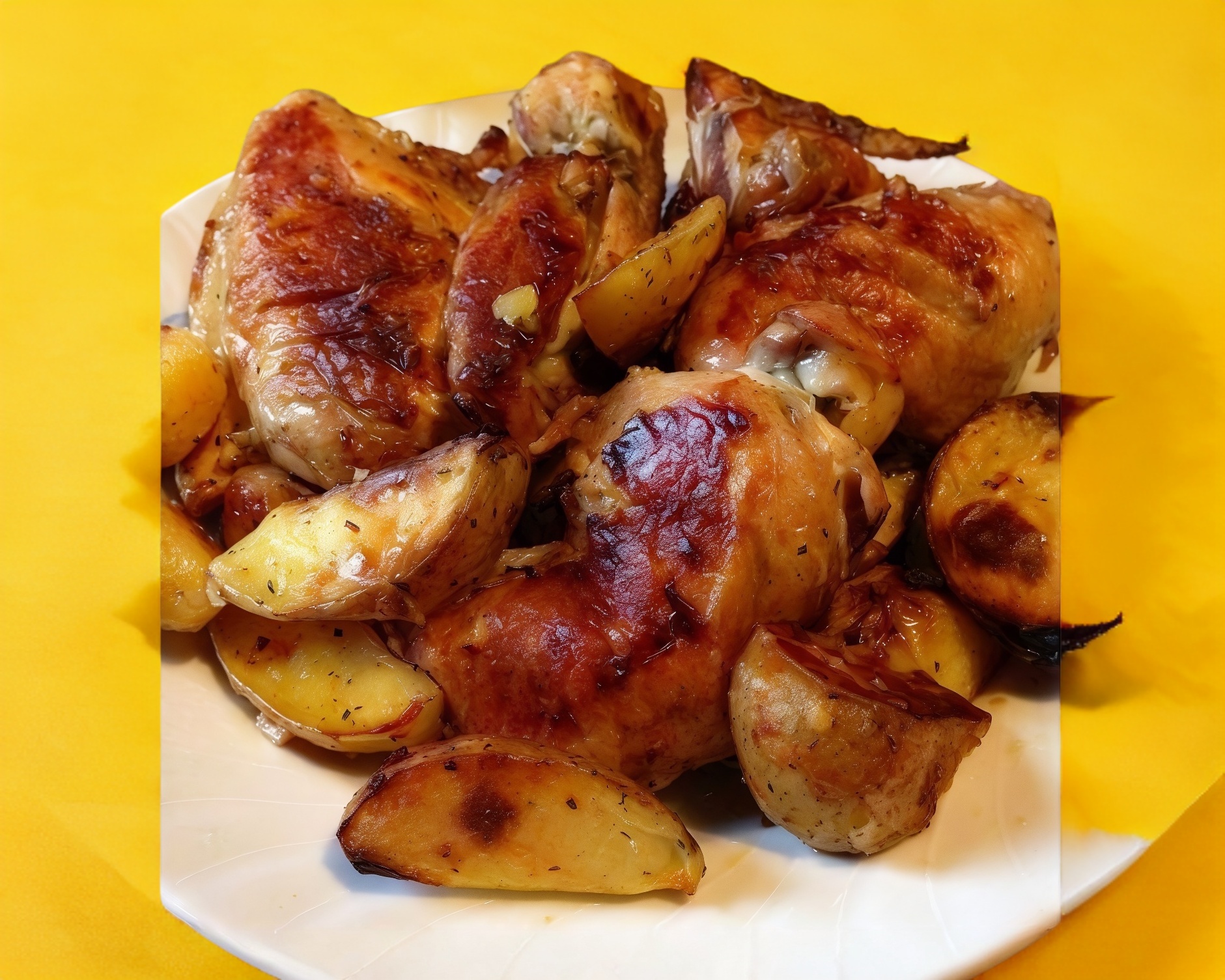 Rostizado en su jugo grande 1.400kg Incluye Arroz (200gr), salsa, tortillas (250gr) y Complemento del dia (Consome o Papitas a la diabla)